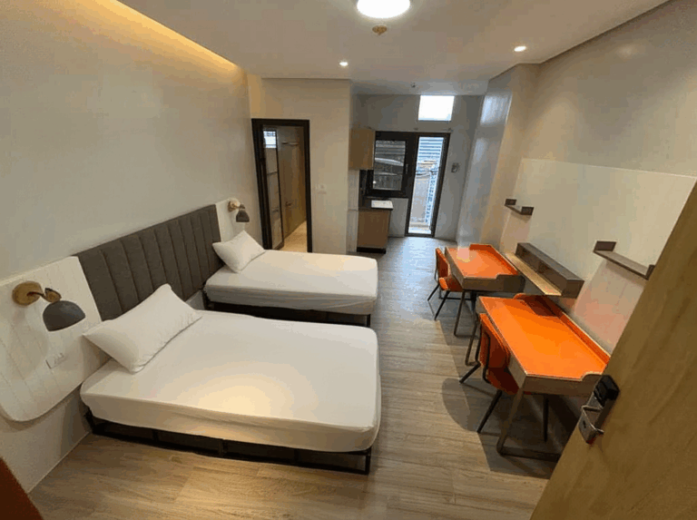 雙人房的空間比單人房 A 型更為寬敞,即使兩人入住,也能享有充足且舒適的活動空間。
